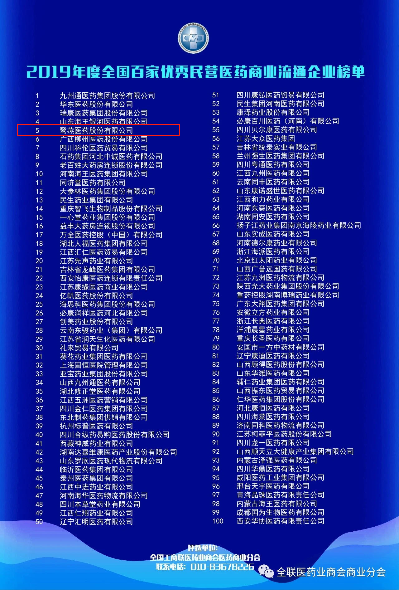 2019年度全国百家优秀民营医药商业流通企业榜单发布