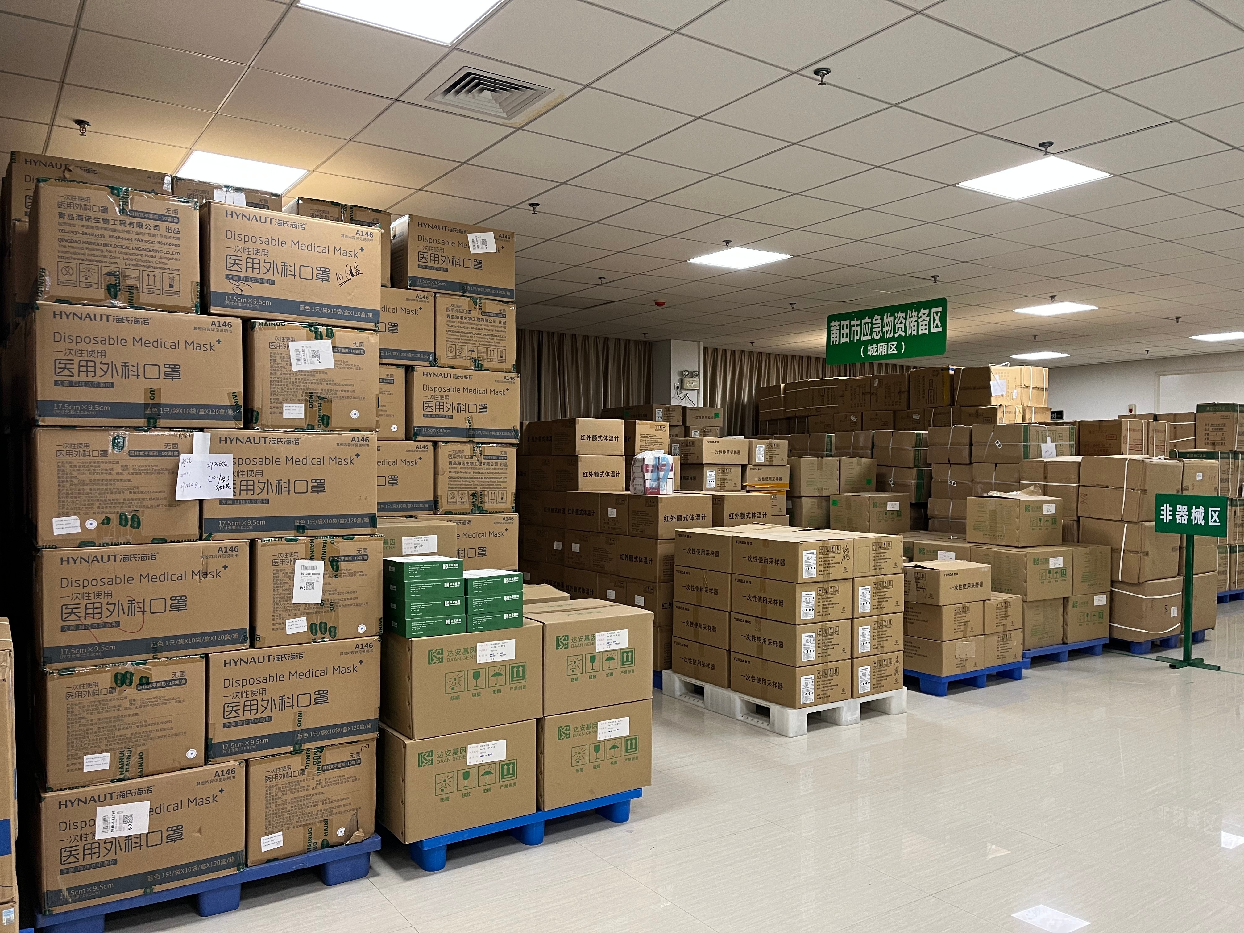 分类存放莆田市应急防疫物资
