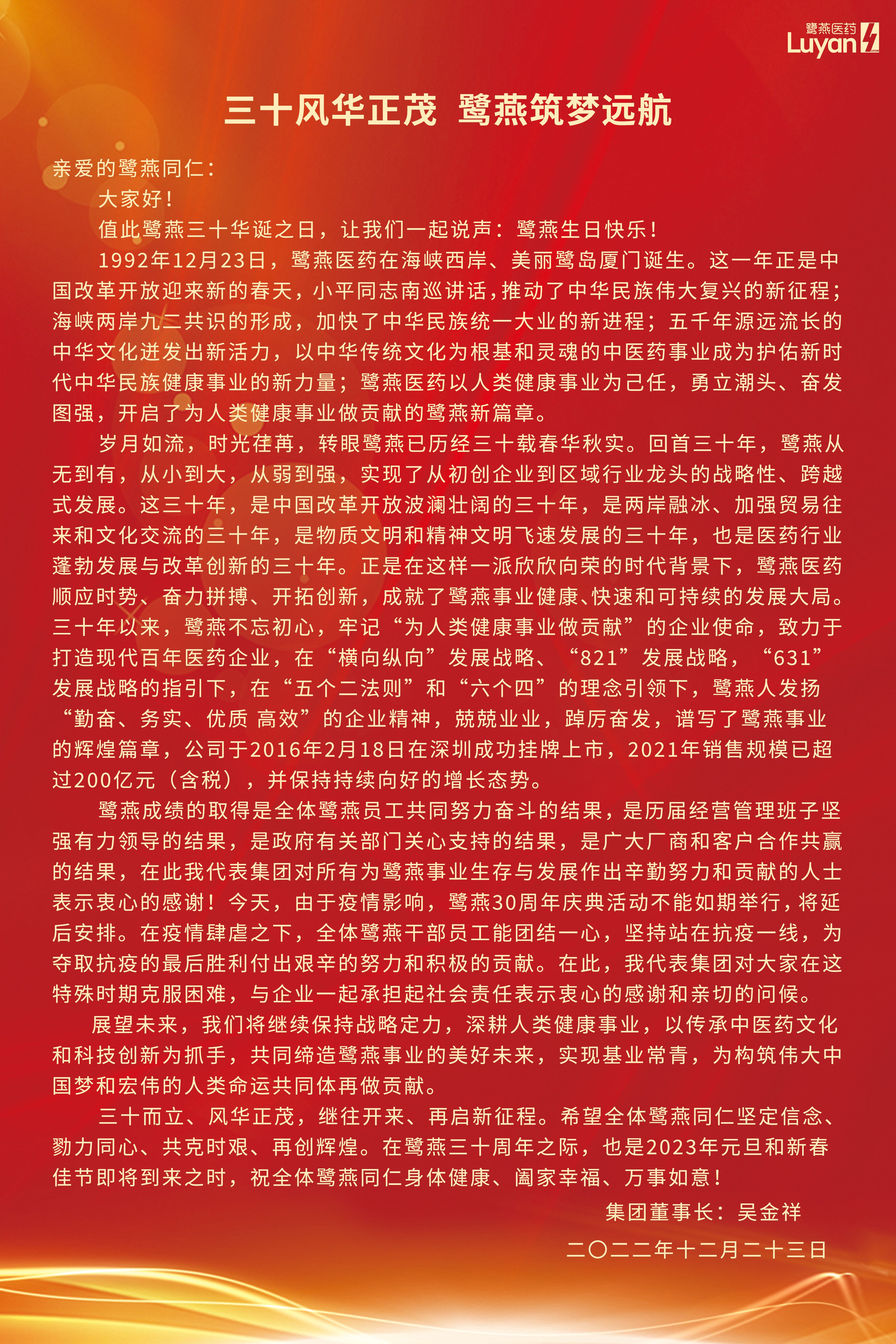 三十风华正茂,鹭燕筑梦远航