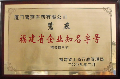 近日, “鹭燕”字号被福建省工商局认定为2008年度福建省企业知名字号,这是继“鹭燕”商标及图被福建省工商局认定为福建省著名商标后的又一荣誉,也是对鹭燕集团多年来坚持依法规范、诚信经营的肯定和鼓励。