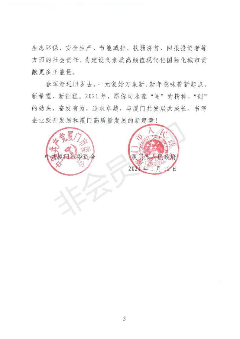 华体会hth·(体育)(中国)官方网站 收到厦门市委、市政府来信