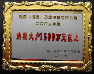 2010年3月23日,厦门湖里区人民政府召开2009年度纳税先进企业表彰大会,并公布2009年度纳税先进企业名单,鹭燕集团核心成员企业鹭燕(福建)药业股份有限公司光荣登榜。自2006年以来鹭燕集团已连续四年获得纳税大户(1000万以上)荣誉称号。