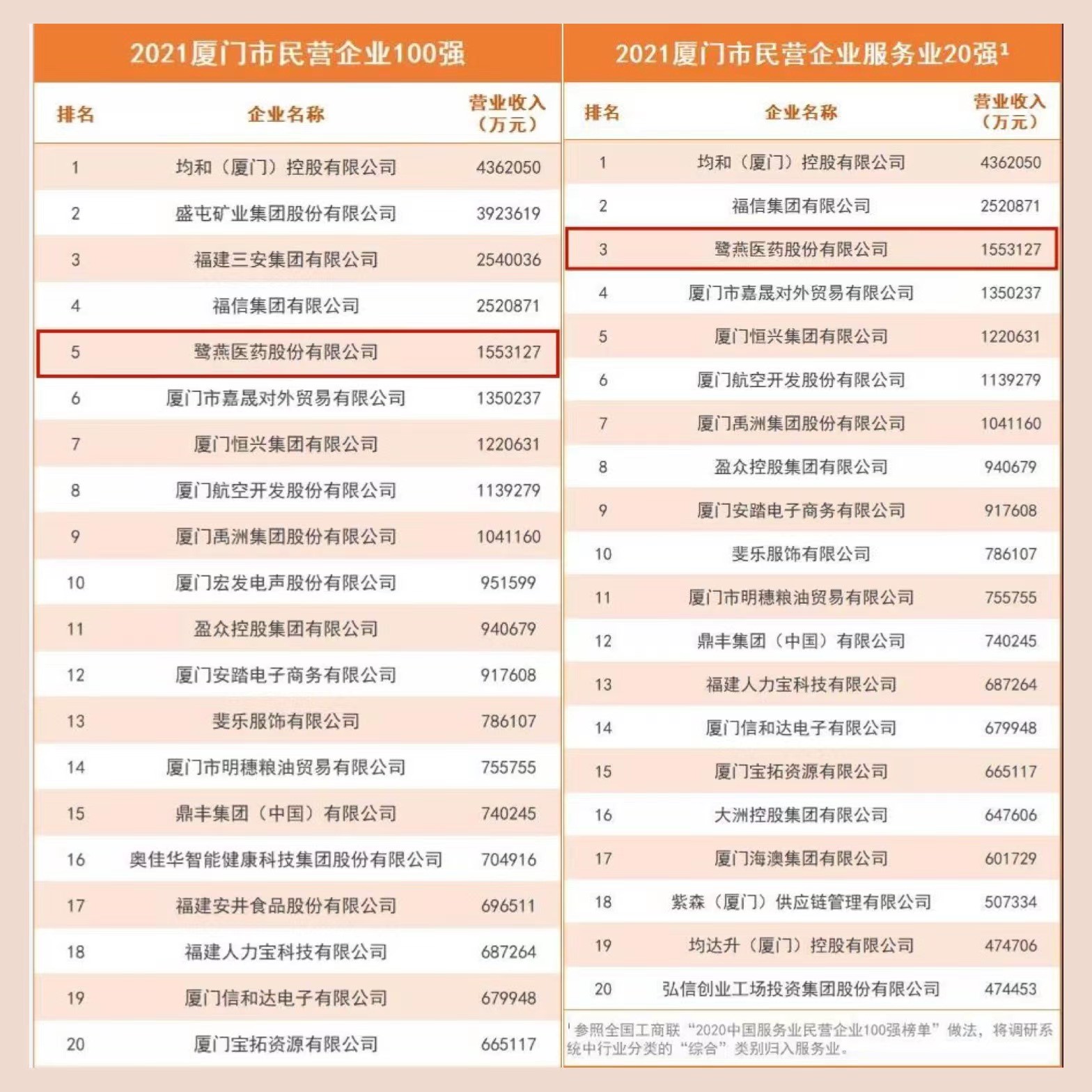 2021年厦门市民营企业100强榜单发布