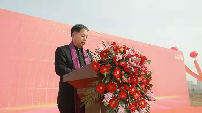 开工仪式在热烈的氛围中正式拉开帷幕,集团董事长兼总裁吴金祥、谯城区区委副书记、区长宋保众、建设单位及监理单位代表先后上台致辞,亳州市区两级政府领导及集团领导共同为奠基石挥锹培土,亳州市委副书记张志强宣布项目正式开工建设。