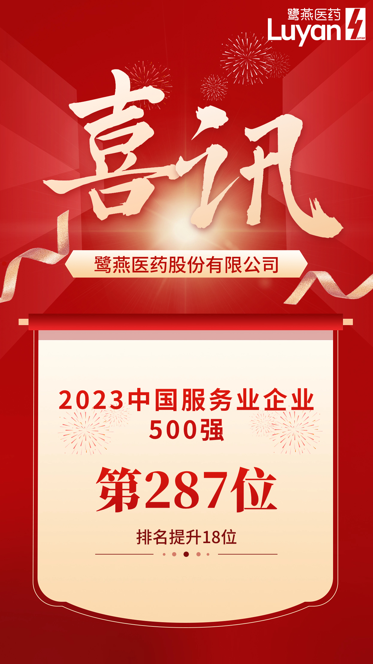 鹭燕医药荣列2023中国服务业企业500强第287位