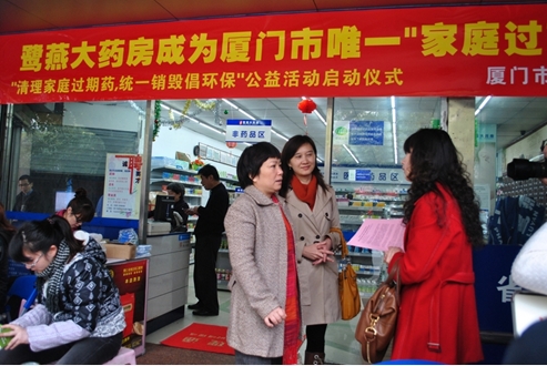2012年3月15日上午,由厦门市食品药品监督管理局和厦门鹭燕大药房有限公司联合发起的“清理家庭过期药、绿色健康倡环保”公益活动启动仪式在鹭燕大药房前埔分店举行。本次活动的主旨是倡导健康环保,同时给广大人民群众营造一个安全健康的用药环境,有效减少因过期药品使用给家庭带来的健康伤害。