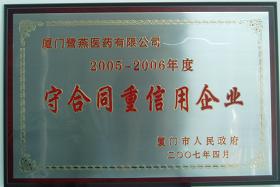 经过层层选拔、评审,厦门鹭燕医药有限公司和厦门鹭燕大药房有限公司双双荣获了“2005-2006年度守合同重信用企业”称号,这是政府权威部门对我集团合同管理工作的充分肯定。