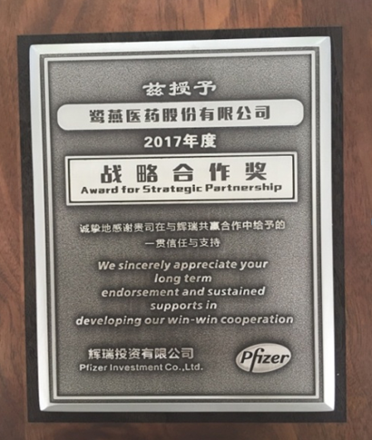辉瑞制药为鹭燕医药颁发“战略合作奖”