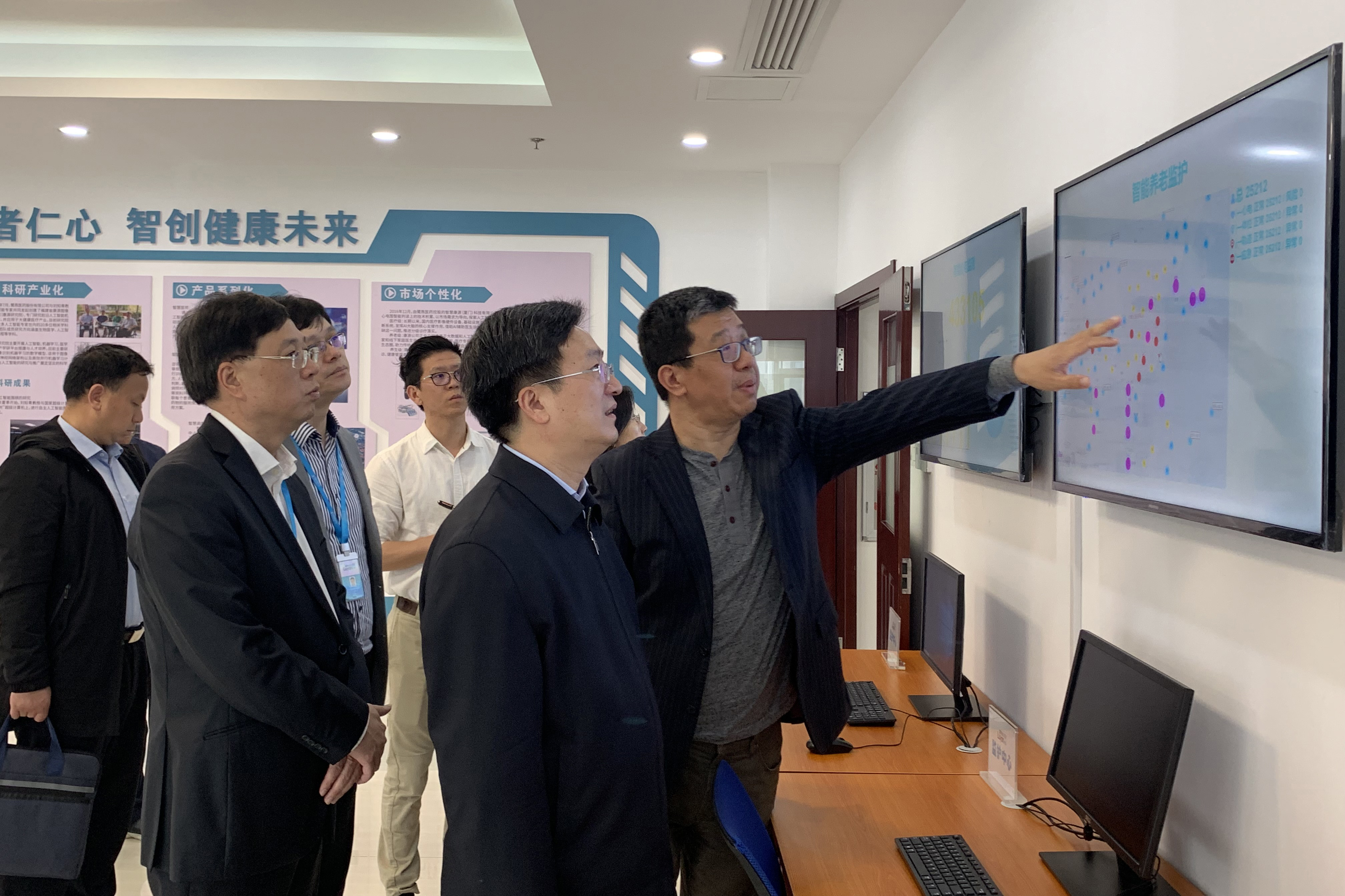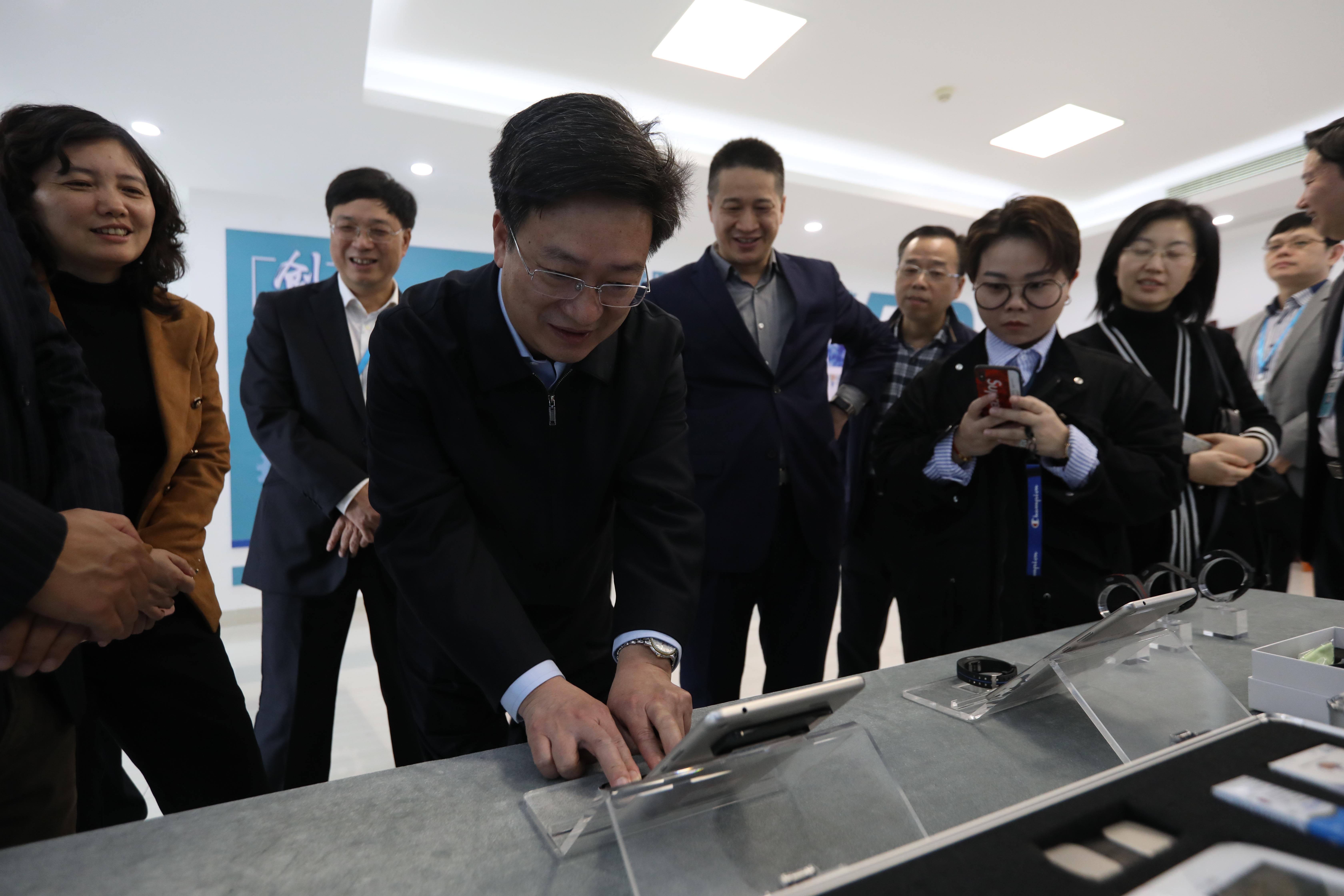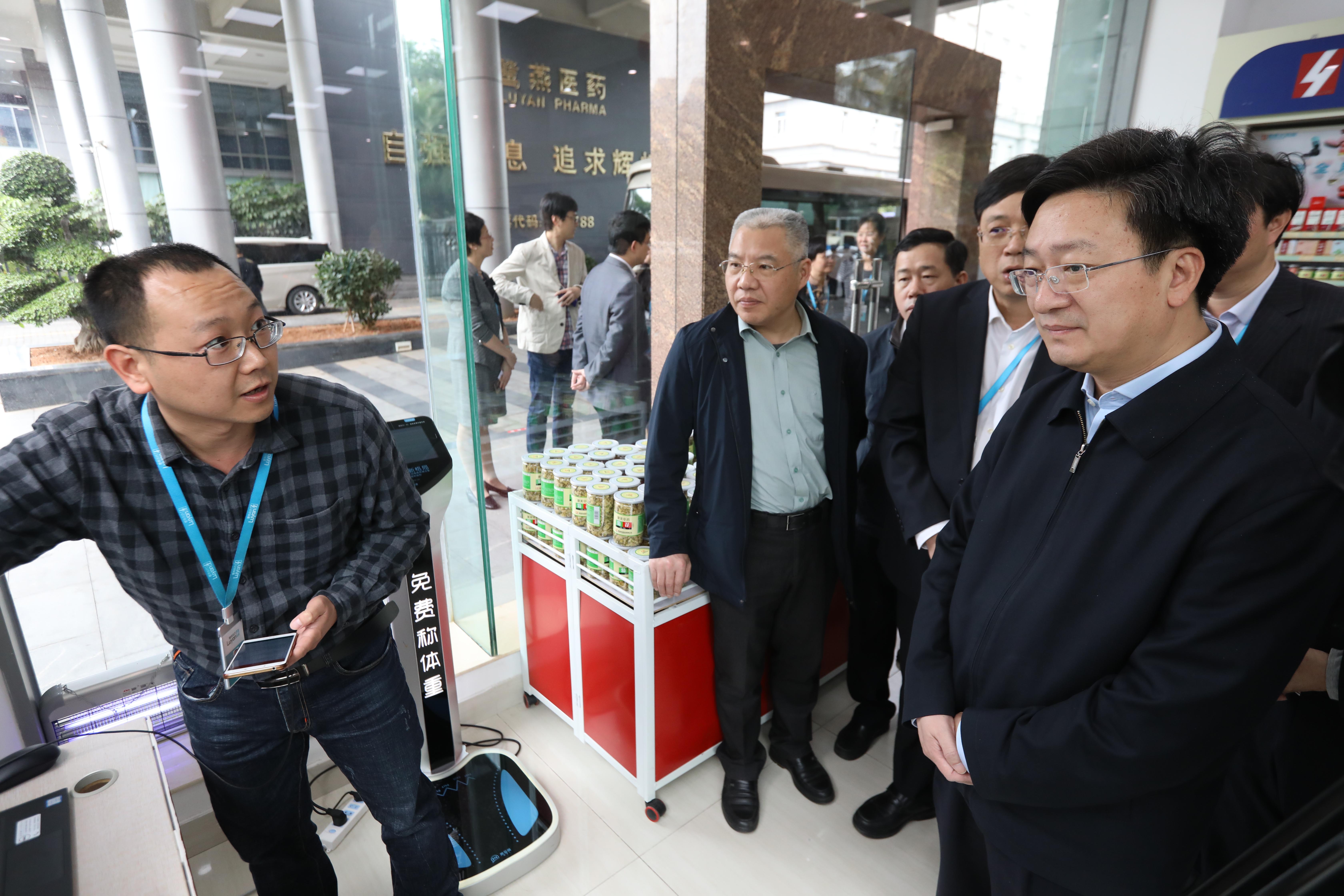 随后,施副局长一行参观了鹭燕医药人工智能产品体验馆,鹭燕医药首席科学家刘知青教授重点介绍了鹭燕医药人工智能技术在医疗领域的创新应用,施副局长亲自体验了鹭燕医药旗下智慧康源科技公司推出的智能心电检测计。